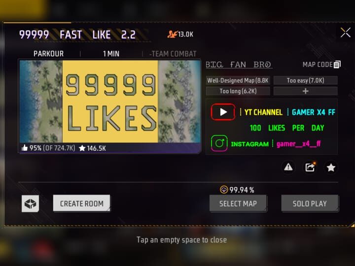 Certain Craftland maps, such as those titled ‘99999+ likes,’ ‘unlimited likes,’ and ‘Increase Likes in Free Fire,’ are designed to facilitate an increase in a player’s in-game ‘likes.’
